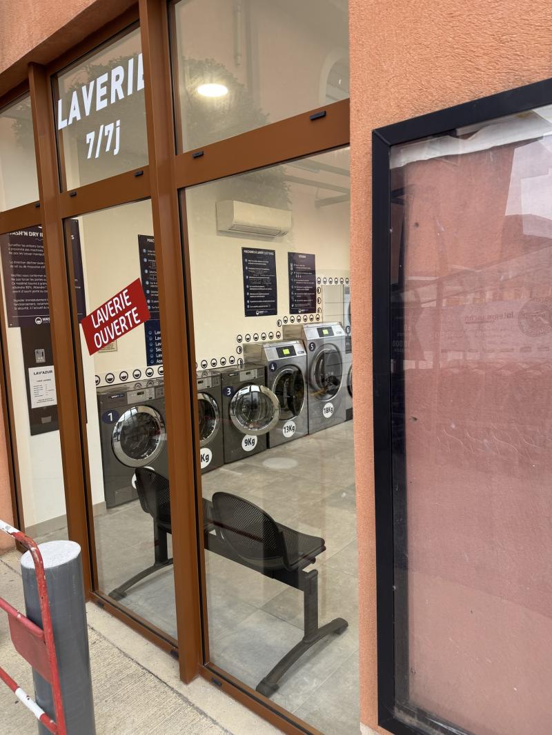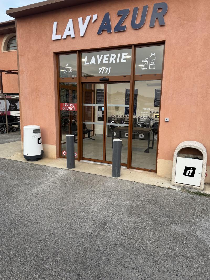 Menuiserie fixe + porte coulissante à ouverture automatique pour la laverie Intermarché La Londe-les-Maures. Modernité et confort au rendez-vous !
