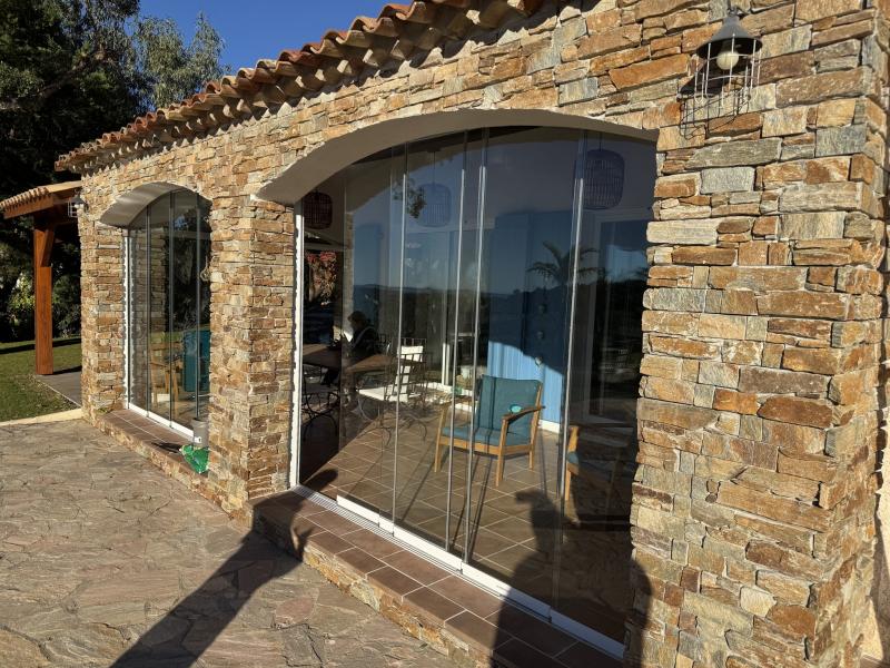 Superbe mur de verre repliable parfaitement intégré aux arches en pierre